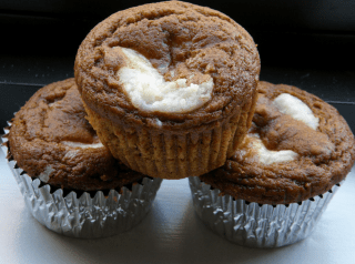 Llenar cada molde con la primera mezcla hasta la mitad y luego agregar una gran cucharada de la mezcla del queso.