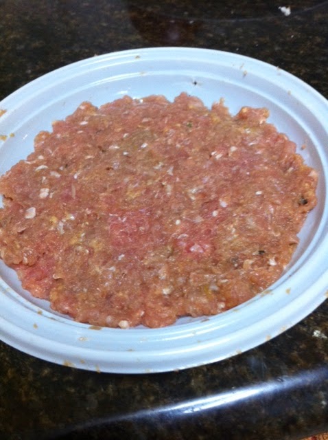 En un bowl mezclar los ingredientes para la hamburguesa todos juntos. Calentar una parrilla o sartén a fuego alto, cuando esta bien caliente bajar hasta que las hamburguesas estén listas para cocinar.