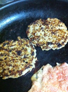 Separar bolitas medianas de carne y aplastarlas en un plato chico como se ve en la foto, del grosor que les guste, a nosotros nos gustan finitas., con espacio entre cada una ponerlas a cocinar con fuego casi al máximo, por 5 minutos de un lado y 3 aprox. del otro lado.
