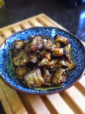 Mientras, en un frasco mezclar bien el resto de los ingredientes y cuando la berenjena esta tibia, agregarla al bowl, sacudir el bowl, para que la salsa cubra toda la berenjena. Guardar en heladera y por lo menos una vez por dia cambiar las berenjenas de arriba con las e abajo, para que el gusto quede parejo.